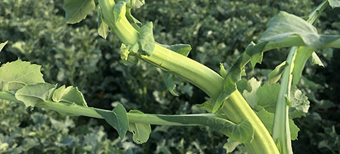 Les piqûres de pontes provoquent des déformations et des éclatements de la tige. Plus l’attaque est précoce, plus les dégâts peuvent être graves.